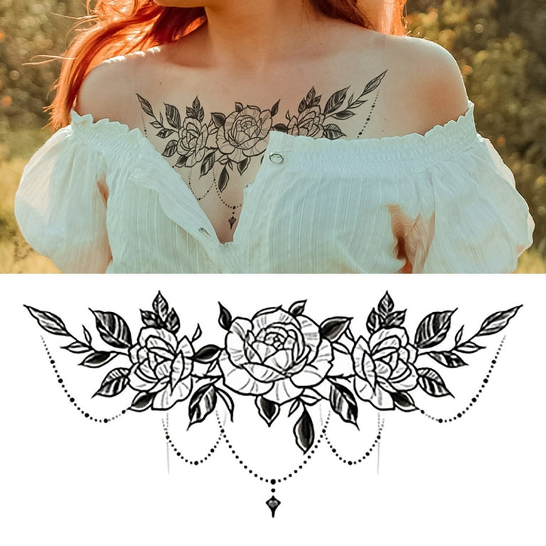 Floral Underboob Temporary Tattoo Large Floral Tattoo Etsy
